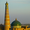 Frühstück. Transfer nach Margilan. Besuch der Seidenspinnereimanufaktur Yodgorlik in Margilan. Transfer zum Flughafen in Taschkent. Fahren wir nach Chiwa (30 km). Transfer zum Hotel. Geführte Stadtrundfahrt durch die märchenhafte usbekische Stadt: Chiwa, die frühere Hauptstadt von Choresm, wirkt wie ein großes Freilichtmuseum, da die meisten Bauten des noch komplett erhaltenen Stadtkerns wie der Palast Toshchauli oder das Mausoleum Pachlawon Machmud restauriert worden sind und nur noch wenige tausend Menschen in der von einer hohen Lehmmauer umgebenen Altstadt wohnen. Abendessen im lokalen Restaurant. Übernachtung im Hotel.